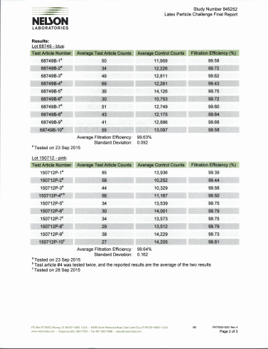 美国尼尔森实验室颗粒物过滤效率最终检测报告